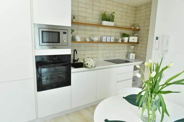 La ligereza cromática, con sabor artesanal, está bien colocada junto a los tonos frescos y decididos del encalado de paredes y techos y la calidez de la madera de los suelos.