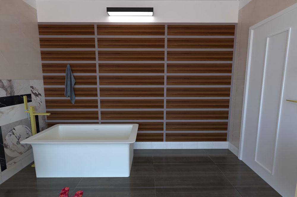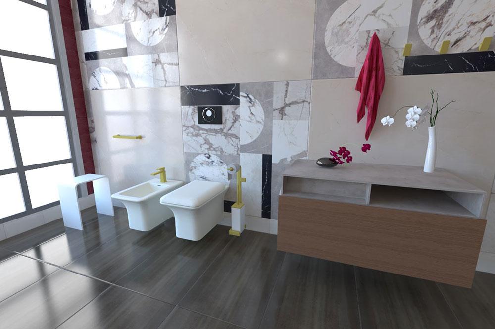 Suministro: Grifería Gessi Eleganza en acabado dorado, lavabo de sobremesa Gessi Ispa, sanitarios Gessi Ispa, bañera Gessi Ispa, placa de cisterna Geberit, accesorios Gessi Emporio en acabado dorado, espejo Gessi Eleganza en acabado dorado, muebles colgantes Antonio Lupi Panta Rei, muebles colgantes Rexa, taburete Lineabeta, muebles colgantes Lineabeta, revestimiento Abk Sensi Wide y China, parquet Berti, lámpara Davide Groppi Linet y suelo Dom Ceramiche.