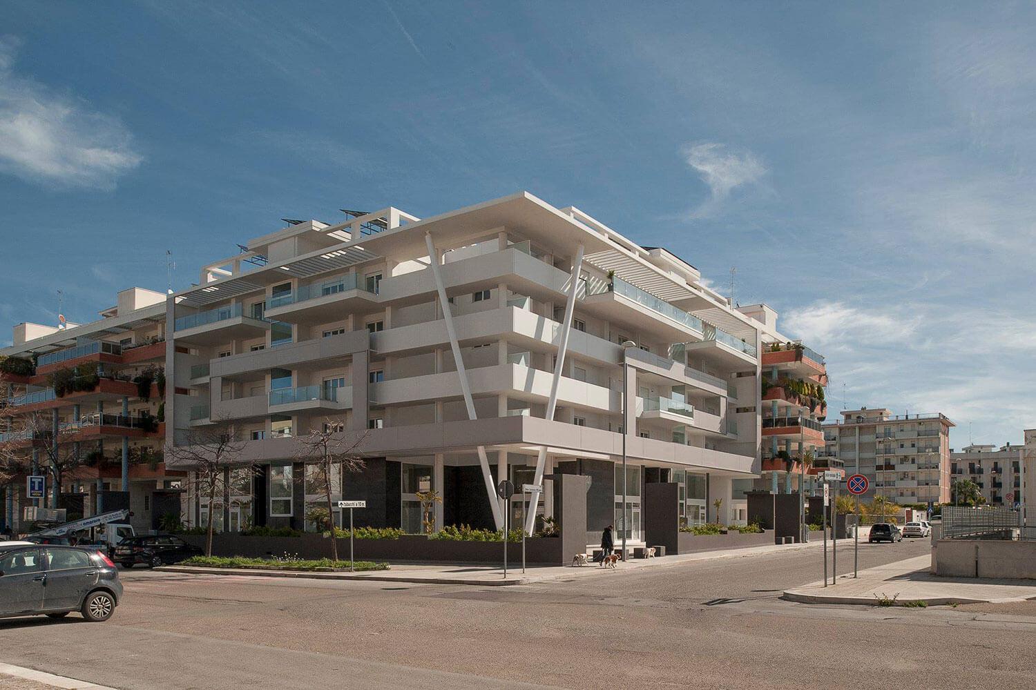 El proyecto "Residence Navy" nació con dos grandes objetivos. El primero era crear viviendas exclusivas y prestigiosas. El segundo era utilizar tecnologías de vida de última generación, alimentadas por fuentes renovables para lograr un excelente confort. Todo se armonizó con formas geométricas racionales de gran belleza arquitectónica.